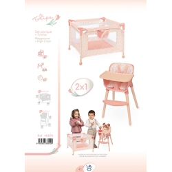 Sichern Sie sich ein ganz besonderes Zwei-in-Eins-Set für das Rollenspiel, bestehend aus einem wunderschönen Hochstuhl und einem Spielplatz, mit einem speziellen Design aus der neuen, bunten Tulipe-Linie. Ideal, um das Rollenspiel zu genießen, während Sie die besonderen Spielpuppenbabys betreuen und spielen.