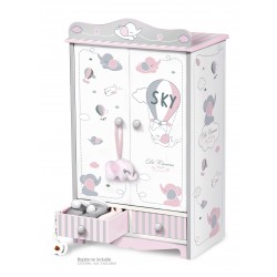 Das Set enthält: Kleiderschrank aus Holz für Puppen der Sammlung Sky mit Türen und Schubladen.