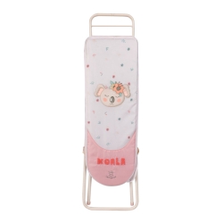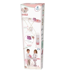 Das Paket enthält: Weißes und rosafarbenes Bügelbrett mit speziellem Design aus der Koala-Linie, zusammenklappbarer Struktur, unterer Stoffablage, einem Spielzeug-Bügeleisen und drei Kleiderbügeln aus Kunststoff